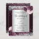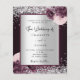A deep burgundy and faux silver looking background decorated with burgundy and pink florals, flowers and faux silver glitter, sparkles. Personalize and add your names and wedding details. Black letters.