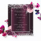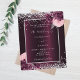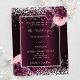 A deep burgundy background decorated with burgundy and pink florals, flowers and faux silver glitter, sparkles. Personalize and add your names and wedding details. Black letters.
