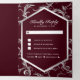 Burgundy Silver Flourish Swirl Wedding Photo Tri-Fold Invitation