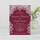 Elegant Burgundy Wedding Invitation with an intricate faux silver glittery Mandala flower design representing the blossoming of Purity within our Soul. This beautiful colour encourages feelings of warmth and comfort. Perfect for a lovely Autumn ceremony. You can change the text from the Personalize Menu. Different papers are available. If you would like matching products or need my help please contact me. Original Design by SunFreeStar.