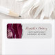 Le bord gauche de cette élégante étiquette d'adresse de retour de faire-part de mariage moderne comporte une bordure d'aquarelle bordeaux et ornée d'une fausse parties scintillant argentée. Le texte personnalisable combine écriture manuscrite bordeaux et gris charbon et polices de cuivre sur un arrière - plan gris clair.