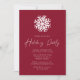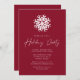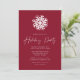 Modern holiday party invitations featuring a white snowflake at the top of the design with a festive burgundy background. "Holiday Party" is displayed in a white handwritten script. Personalize the snowflake holiday party invitations with your party details.