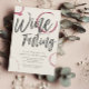Wine tasting party invitation in off-white with burgundy wine glass stains and a stylish brush script.