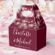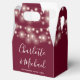 Elegant wedding favour box featuring pretty string lights, chic signature script names and special date on a burgundy background. You can personalize with your own thank you message on the reverse. A perfect way to say thank you to your guests! Designed by Thisisnotme©