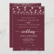 Burgundy String Lights Stars Front & Back Wedding Invitation