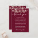 An elegant burgundy wedding celebration thank you reception card featuring pretty string lights. Personalized with your special thank you message set in stylish typography. A special keepsake thank you for your guests. Designed by Thisisnotme©
