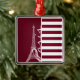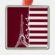 Burgundy Stripes; Eiffel Tower Metal Ornament
