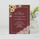 Burgundy Sunflower Rustic Script Photo Wedding Invitation