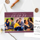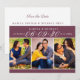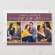 A rich and dramatic save the date featuring a deep burgundy banner with elegant white date numerals and names, above a three-photo collage showcasing your favourite engagement photos. The jewel-toned wine palette creates a sophisticated, romantic aesthetic perfect for fall, winter, or formal wedding styles. The coordinating back panel includes space for wedding details and your website. All text and photos are fully customizable.