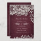 Vintage floral lace design on cranberry burgundy red background, elegant and classy, great for vintage wedding, rustic wedding, and country wedding in fall and winter.