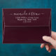 Burgundy Watercolor Paper Trendy Script Lettering 5x7 envelope or choose your size as there are several options available. This beautiful envelope features a watercolor hand painted texture look, with a modern handwritten script font with tails. Personalize them with your names and return address information. Simple, modern, and stylish for your weddings, events, and cards.