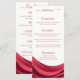 Inspired by 2026’s rich, burgundy color trends, this design features flowing abstract drapery in deep burgundy hues. The layered movement echoes the year’s drapery-inspired aesthetic, reminiscent of elegant gathered fabric backdrops and statement reception installations. A clean, modern layout keeps menu details easy to read while the luxurious artwork adds depth, motion, and high-impact sophistication to your tablescape.