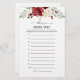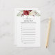Burgundy floral Where were we bridal shower game