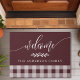 Burgundy White Buffalo Check Welcome Personalized Doormat