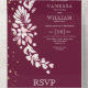Burgundy, white floral garland with hearts wedding all in one invitation