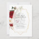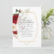 Rustic boho burgundy red (marsala) and white peonies herbarium first holy communion invite with gold geometric frame designed to be quickly and easily customized to your event specifics.