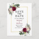 Burgundy White Floral Save The Date Gold Frame Postcard