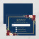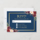 Burgundy Wine Colour Floral Gold Navy Blue RSVP Reply Card.