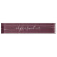 Elegant desk nameplate features your name, title, or choice of personalization in elegant white calligraphy script lettering on a deep burgundy wine background.