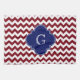Burgundy & White Chevron Zig-Zag Pattern with Navy Blue Monogram Label