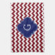 Burgundy Wine, White Chevron Zig-Zag Navy Monogram Kitchen Towel