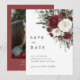 Burgundy Winter Floral Photo Back Wedding Save The Date