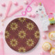 Burgundy with Gold Stars Pattern Paper Plate