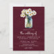 Burgundy Wood Daisies Mason Jar QR Code Wedding Invitation