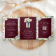 Burgundy Wood Daisies Mason Jar QR Code Wedding Tri-Fold Invitation