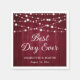 These burgundy rustic wedding paper napkins featuring a wood background adorned with string lights are ideal for a burgundy rustic country, backyard or barn wedding party. Easily personalize these napkins with your wedding details.