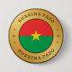The Burkina Faso flag is inset into a rounded faux gold ring. The words "Burkina Faso" feature at the top and bottom of the design, and are of a pressed effect. The pair of three decorative stars across from each other, are also designed with a pressed effect.