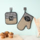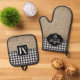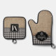 Burlap and Black Buffalo Check Personalized Oven Mitt & Pot Holder Set