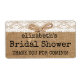 This pretty label is perfect for your rustic country themed bridal shower guest favours and water bottles. Burlap and lace background, with a raffia bow IMAGES . Add matching products. Available in other designs. Please visit my store "The Hungarican Princess", at www.zazzle.com/hungaricanprincess*. Look in my "Oh Baby" department category or "Burlap and Lace" collection. NOTE: WHEN CHANGING SIZE OF LABEL- PLEASE ADJUST IMAGE TO FIT. KEEP ALL TEXT INSIDE THE RED DOTTED LINE.