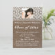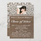Simple burlap and lace theme is great for a rustic, outdoor or country graduation party, barbeque or just a girl who loves the natural look. Textural, rough-look image of light brown burlap contrasts the soft elegant delicate white lace. Copyright © www.CustomInvitesOnline.com