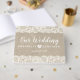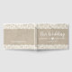 This rustic wedding guest book features a burlap look background bordered by delicate lace. Customize with your names, wedding date, and special quote on back. The perfect compliment to your rustic wedding decor.