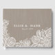 An elegant and vintage inspired burlap and lace wedding guestbook design by Shelby Allison.