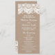 Our burlap and lace wedding programs have wording that is completely customizable. Use Zazzle's "Personalize this template" tool to enter your wedding ceremony information. If you need to change the placement of the text boxes, font colour or size just click on the "Click to customize further" button to change those things. Be sure to check out our large selection of coordinating items by browsing the Rustic Burlap and Lace Wedding collection!