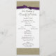 The look of burlap with a dark purple bow wedding program to compliment invitations. Change text as needed.