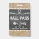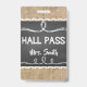 Burlap & Chalk Teacher Hall Pass for Classroom Badge