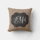 Burlap Chalkboard Look Triple Monogrammed Script Throw Pillow
