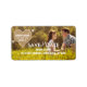 Mariage rustique Enregistrer le Étiquette de adresse de date. Conçu par Elke Clarke© Bold, texte blanc simple et moderne sur un coeur de burlap percé par une flèche blanche. Entièrement personnalisable si vous sélectionnez "customiser". Remplacez l'exemple de photo montré par votre propre photo fiançailles.
