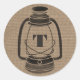 Burlap Inspired Monogram Oil Lantern Classic Round Sticker