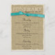 Burlap Itinerary Aqua Bow Enclosure Card