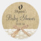 Burlap Lace and Footprints Baby Shower- Favour Classic Round Sticker