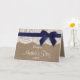 Rustic Burlap, White Lace & Navy Blue Ribbon With Bow Happy Mother's Day Card.