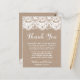Burlap Lace Wedding Place Setting Thank You Cards
