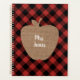 Un planificateur enseignant avec un dessin de crayon s'inspire de l'illustration d'une pomme de burlap sur un arrière - plan de buffle rouge et noir. Personnalisez avec votre nom sur le devant.