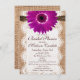 Here's a unique rustic country bridal shower invitation with a printed burlap jute and lace design with a beautiful country purple gerber daisy and printed twine bow at the top. The burlap, lace, daisy and twine are all just printed designs. This is a flat invitation. The rustic country burlap print design is also on the back. These are perfect for brides who will be having a rustic country wedding or barn wedding.