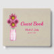 Pretty pink flowers, mason jar on a burlap background decorate this guestbook. Wedding guest books are fun for both the couple and their celebrants. Invite attendees to leave you well-wishes at your reception, and you're guaranteed to have a keepsake to look back on for years to come. Plus, your guests will get to leave their mark on your event, not to mention put in writing whatever they didn't have a chance to express in person on the big day. Personalize the book by changing the text in the fields provided. You can change font style, size, and colour.