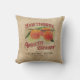 Great Vintage Look with the Burlap like texture and old crate label advertisement. Image has a worn and faded look to give a realistic Vintage Feel to the Pillow